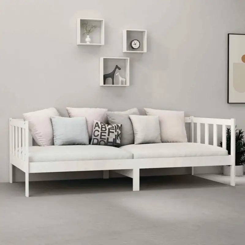 Deze houten slaapbank is ideaal voor het ontvangen van logés, terwijl hij overdag een comfortabele zitplaats biedt.