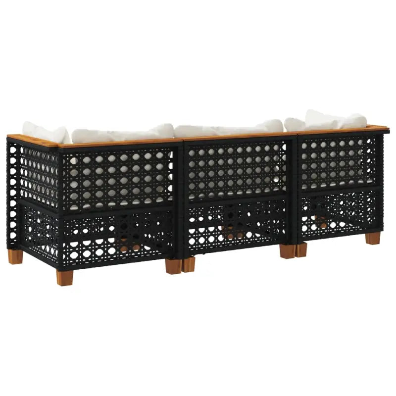 3-zits tuinbank van poly rattan met natuurlijke olieafwerking en comfortabele zitervaring