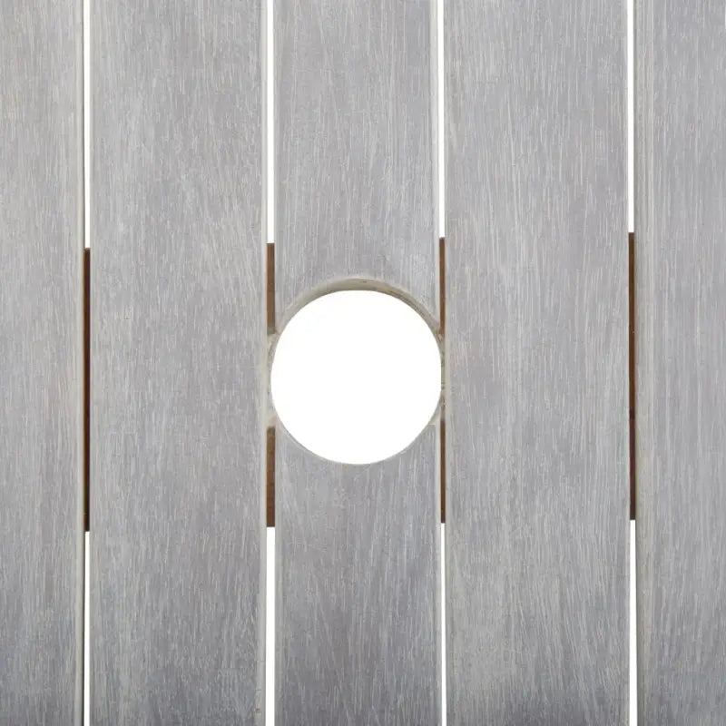 Deze duurzame houten tuinset is gemaakt van massief acaciahout, waardoor hij stevig en gemakkelijk schoon te maken is. Dankzij een gat in het tafelblad kan je eenvoudig een parasol plaatsen om wat schaduw te creëren. De armleuningen en rugleuning bieden je optimaal zitcomfort.