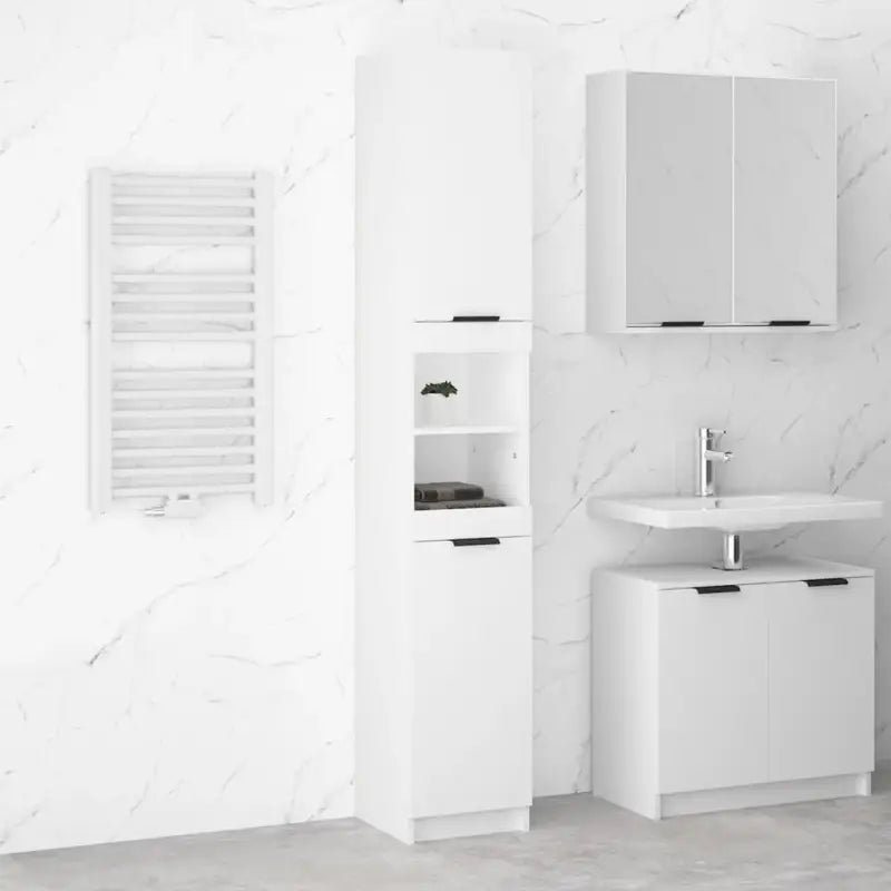 - Duurzaam materiaal: het bewerkte hout is van hoge kwaliteit, heeft een glad oppervlak en is sterk, stabiel en vochtbestendig. De badkamerkast is gemaakt van bewerkt hout en is eenvoudig schoon te maken.