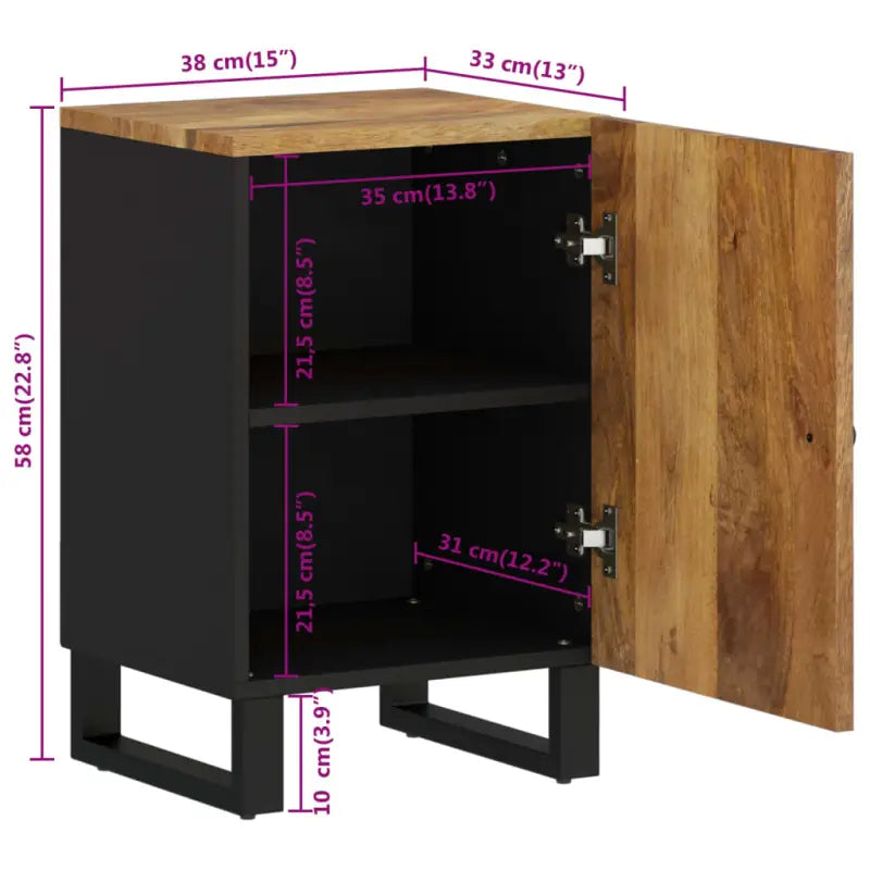 • Materiaal: massief mangohout met een honingbruine afwerking, bewerkt hout, metaal