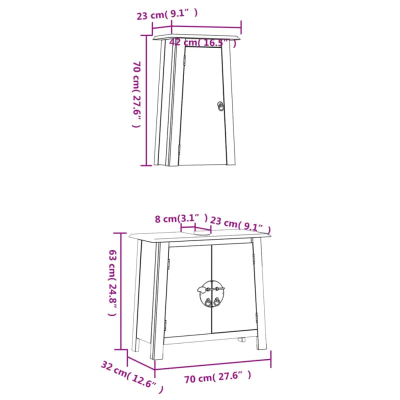 Badkamermeubelset met muur gemonteerd van massief grenenhout