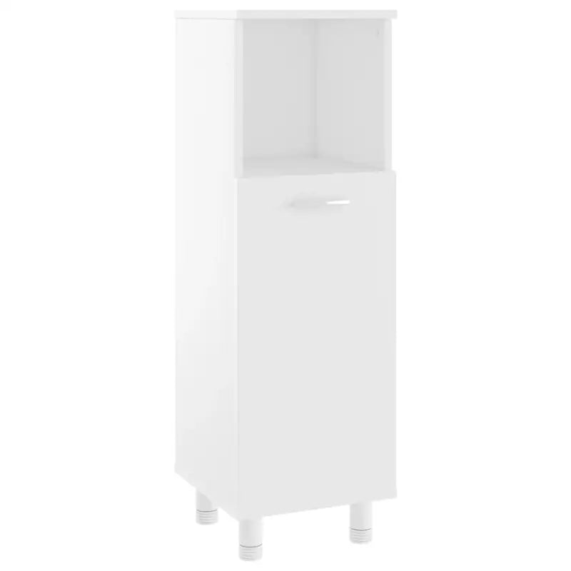 Deze chique kast is gemaakt van bewerkt hout, waardoor hij stevig en stabiel is. Voldoende opbergruimte: de badkamerkast heeft 3 vakken en 1 deur, waardoor je verschillende opbergopties en extra ruimte hebt om dingen in je badkamer op te bergen. De deur heeft een handgreep voor gemakkelijk openen en sluiten. De kast is eenvoudig schoon te maken met een vochtige doek.