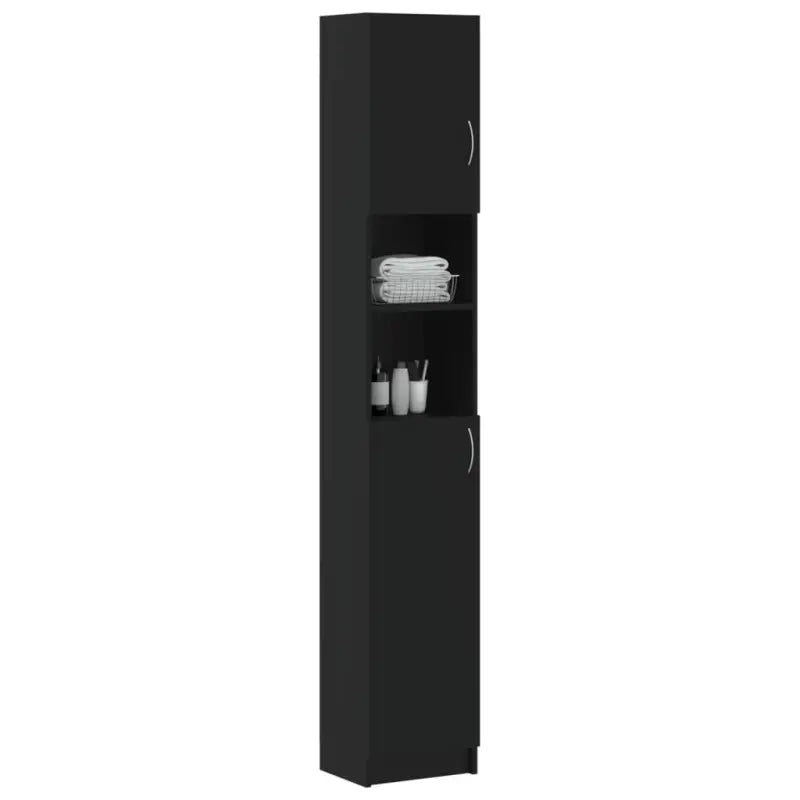 Onze chique badkamerkast is gemaakt van hoogwaardig bewerkt hout waardoor hij stevig en stabiel is. De hoge kast heeft 4 schappen met deuren en 2 open schappen en biedt verschillende opbergmogelijkheden en genoeg opbergruimte om spullen in je badkamer op te bergen. De kast is eenvoudig schoon te maken met een vochtige doek. Deze opbergkast is eenvoudig te monteren met de inbegrepen montagematerialen.