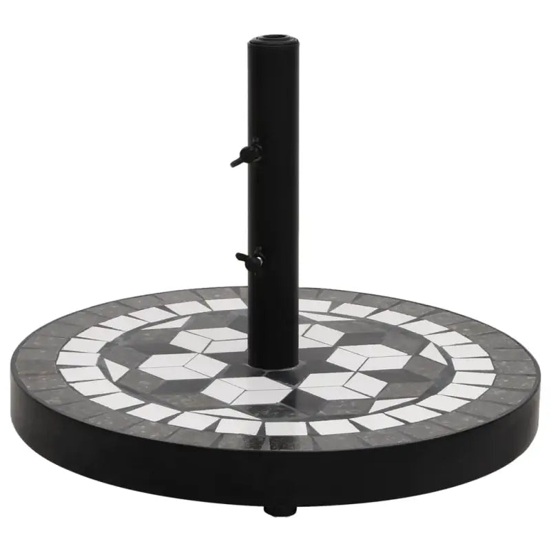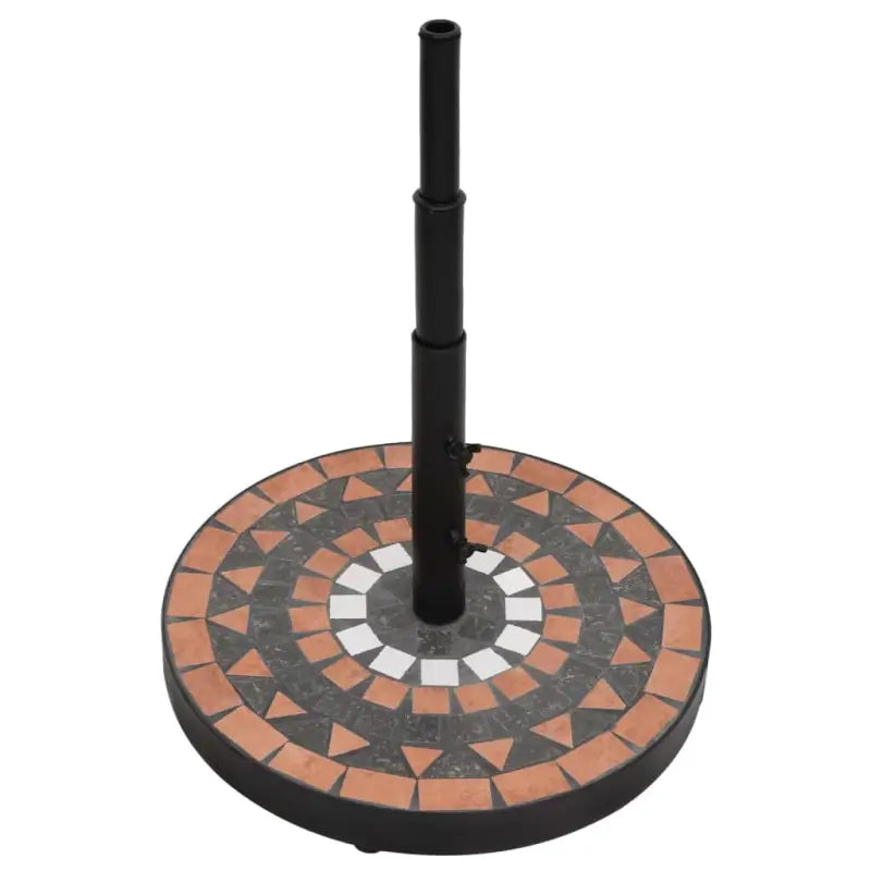 - Uniek patroon: het keramische tegelpatroon van de parasolvoet voegt een klassieke en trendy stijl toe aan je buitenruimte.