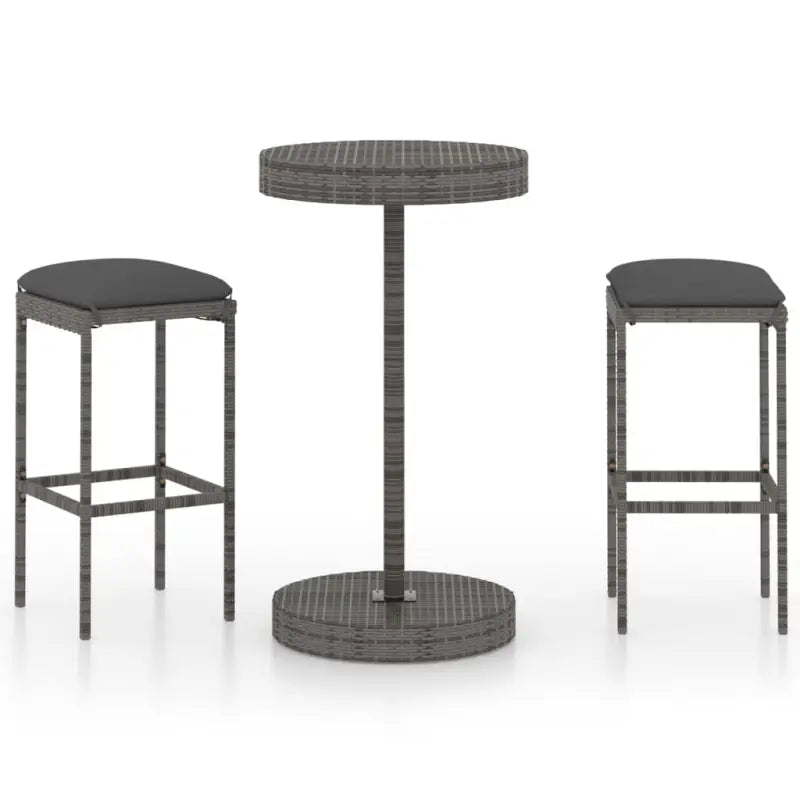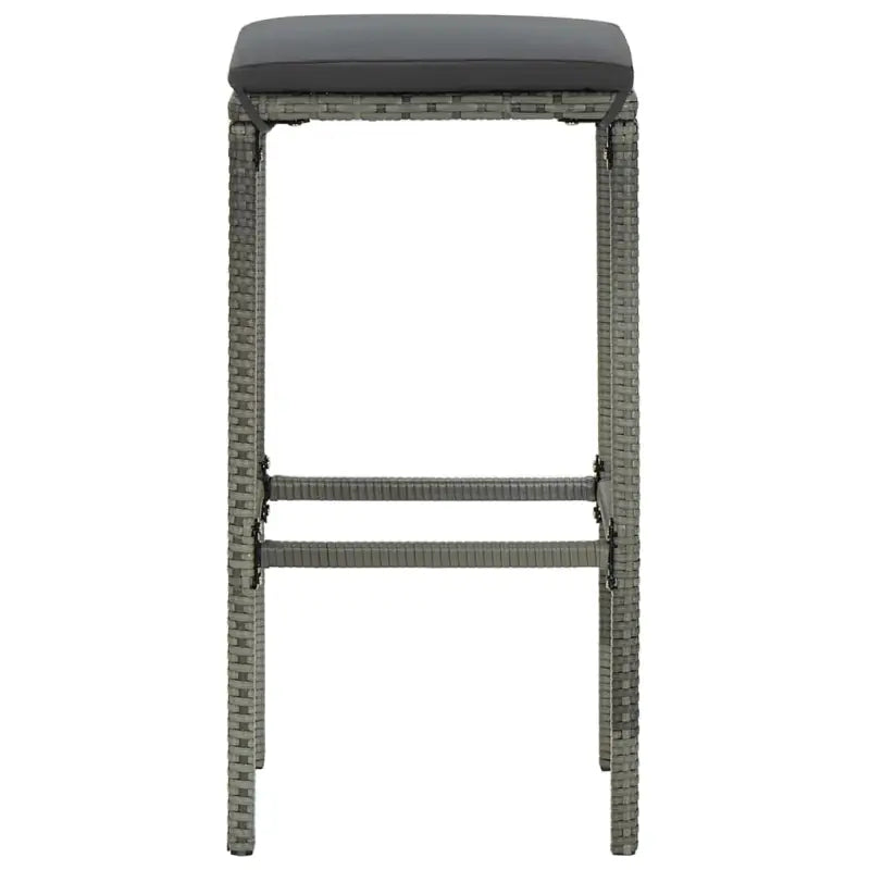 De bartafel wordt ondersteund door een gepoedercoat stalen frame, waardoor hij stabiel en stevig is. Het ronde tafelblad is ideaal voor het plaatsen van drankjes, snacks en enkele decoratieve items. De krukken hebben een stalen frame en zijn gemaakt van weerbestendig PE-rattan, waardoor ze stabiel en gemakkelijk te verplaatsen zijn. Het kussen en de voetensteun maken de kruk nog comfortabeler. De polyester kussenhoes met blinde ritssluiting is gemakkelijk te reinigen.
