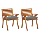 Deze buitenstoel is gemaakt van massief acaciahout, een hardhout met dichte nerven. Deze prachtig vormgegeven set is stabiel, duurzaam en opvallend. Het met olie afgewerkte oppervlak maakt het gemakkelijk schoon te maken met een vochtige doek. De armleuningen zorgen voor meer zitcomfort. Deze armstoelen met gelat ontwerp zijn zowel praktisch als decoratief. Bovendien zorgen de meegeleverde kussens voor extra comfort. Elk kussen heeft 2 sets touwtjes om het stevig aan de stoel te bevestigen.