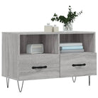 Tv-meubel in grijs Sonoma met bewerkt hout en ijzeren poten