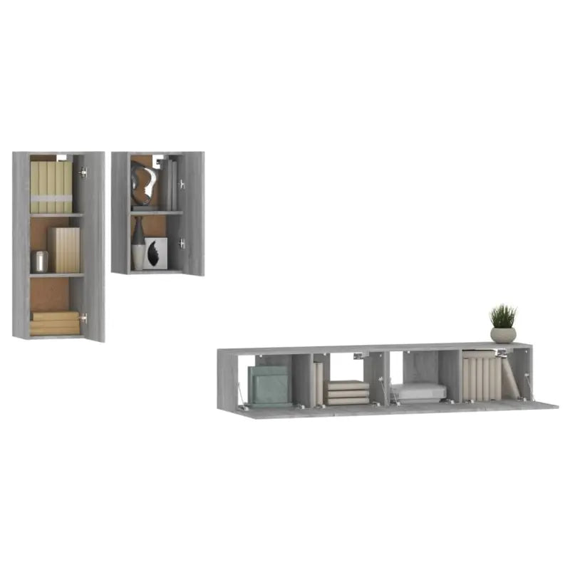 Tv-meubels in grijs sonoma met bewerkt hout voor een klassiek accent