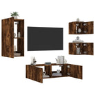 Tv-meubels van bewerkt hout met RGB LED-verlichting in gerookt eiken