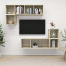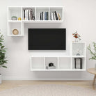 Tv-meubelset van bewerkt hout met muurbevestiging en opbergruimte