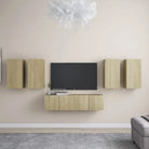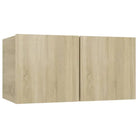 Tv-meubelset van bewerkt hout met opbergruimte en muurbevestiging