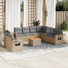 vidaXL 10-delige Loungeset met kussens poly rattan beige
