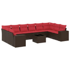 vidaXL 11-delige Loungeset met kussens poly rattan bruin