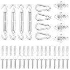De roestvrijstalen bevestigingsset is eenvoudig in gebruik en perfect voor de meeste soorten zonneschermen. Zodra de hijsogen aan een stabiele muur zijn bevestigd, kan het zonnescherm met de karabijnhaken worden vastgeklikt. Ze zijn ook heel gemakkelijk te verwijderen. Bovendien is de spanschroef verstelbaar, waardoor het zonnescherm eenvoudig kan worden vast- of losgedraaid.