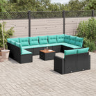 vidaXL 13-delige Loungeset met kussens poly rattan zwart