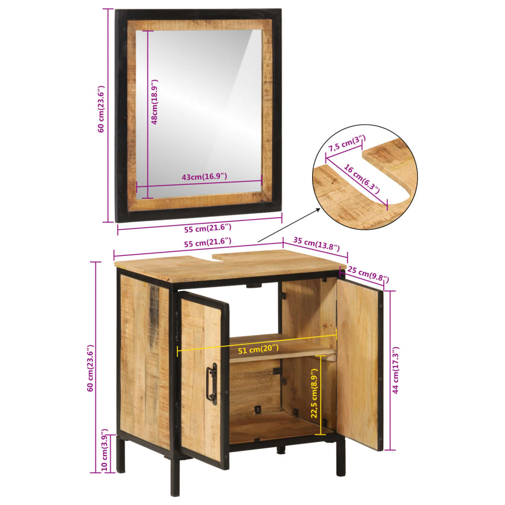 vidaXL 2-delige Badkamermeubelset ijzer en massief mangohout