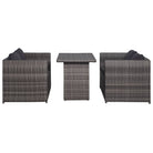 vidaXL 3-delige Bistroset met kussens poly rattan grijs