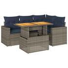 vidaXL 5-delige Loungeset met kussens poly rattan grijs