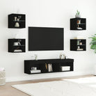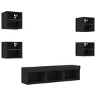vidaXL 7-delige tv-wandmeubelset met LED bewerkt hout zwart
