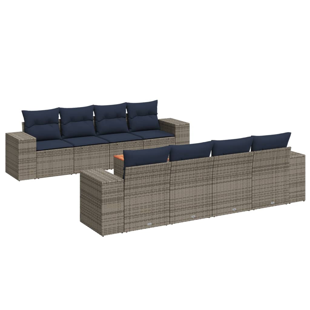 vidaXL 9-delige Loungeset met kussens poly rattan grijs