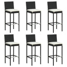 vidaXL Barkrukken 6 st met kussens poly rattan zwart