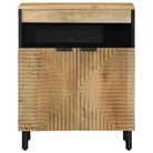 - Materiaal: Mango woestijnbruine afwerking met CNC-front, bewerkt hout, metaal