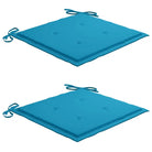 Deze tuinstoelen zijn gemaakt van massief acaciahout waardoor ze stevig en stabiel zijn. Massief acaciahout heeft de kracht om veel gewicht te dragen en is bestand tegen slijtage. Deze buitenstoelen bieden jarenlange ontspanning. Bovendien kunnen de stoelen worden ingeklapt om ruimte te besparen wanneer ze niet worden gebruikt. De meegeleverde kussens bieden extra comfort. Elk kussen heeft twee touwtjes om het stevig op de stoel te bevestigen.