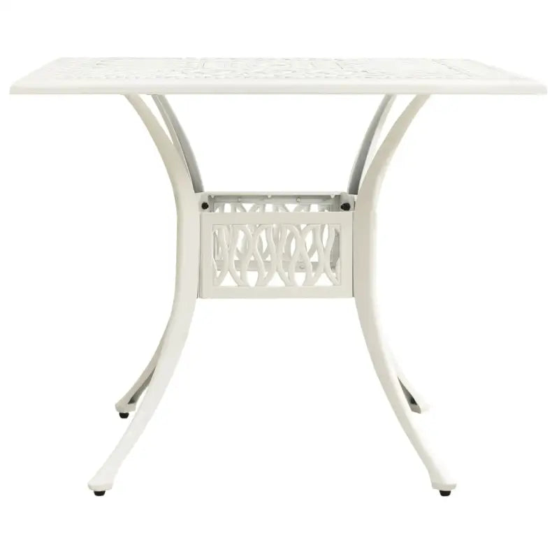 Deze theetafel is gemaakt van gietaluminium en is dus stabiel, stevig en ideaal voor dagelijks buitengebruik. Het tafelblad heeft mooie patronen en is geschikt voor het plaatsen van drankjes, snacks en andere spullen. De vier afzonderlijke poten zijn zeer stabiel. Bovendien heeft deze terrastafel een parasolgat zodat je buiten kunt genieten terwijl je beschermd bent tegen zon en regen.