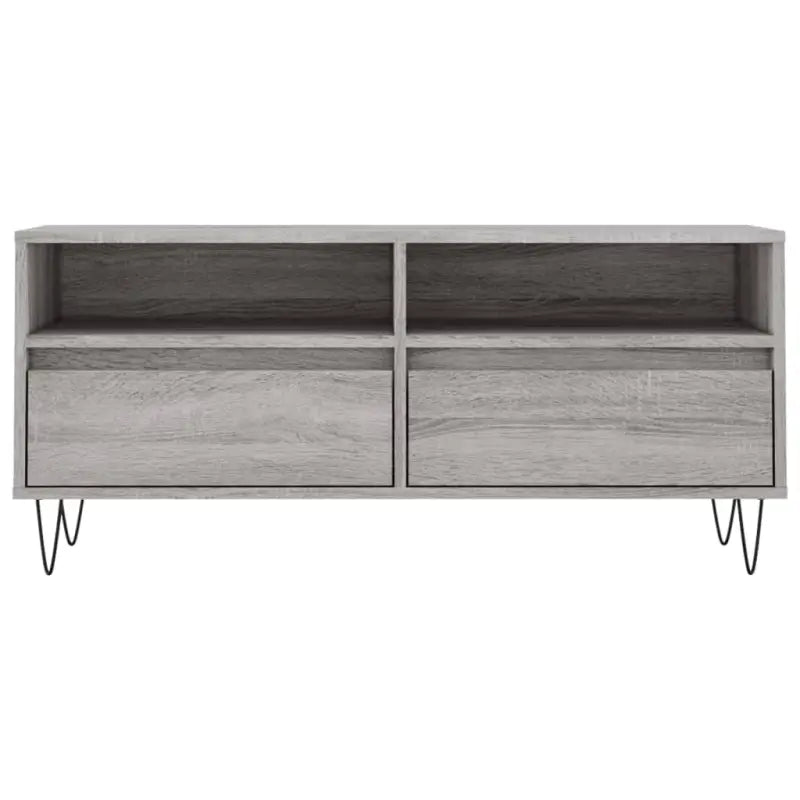 Tv-meubel in grijs sonoma met bewerkt hout en ijzeren poten