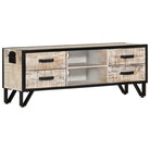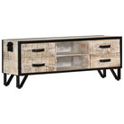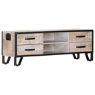 Deze hifi-kast is gemaakt van massief acaciahout met een grijze afwerking waardoor hij buitengewoon duurzaam en stabiel is. De prachtige hardhouten nerven maken elk meubel uniek en net iets anders dan de rest. Je kan je tv, router, multimedia-apparaten of decoratieve voorwerpen, zoals fotolijsten, fruitmanden en vazen, op het stevige hardhouten blad plaatsen. Bovendien, uitgerust met 4 lades en 2 open vakken, biedt het dressoir voldoende opbergruimte voor verschillende kleine spulletjes.