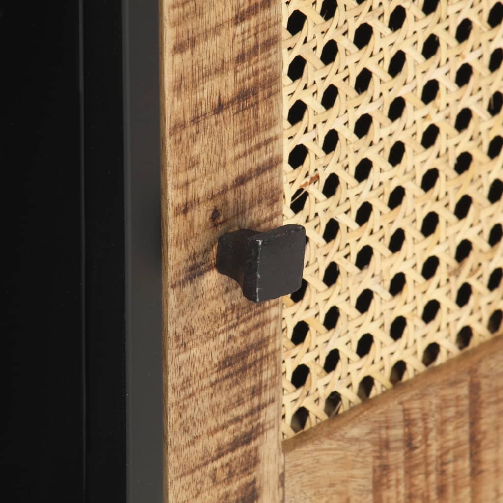 - Materiaal: massief ruw mangohout met een natuurlijke afwerking, natuurlijk riet en ijzer met zwarte poedercoating