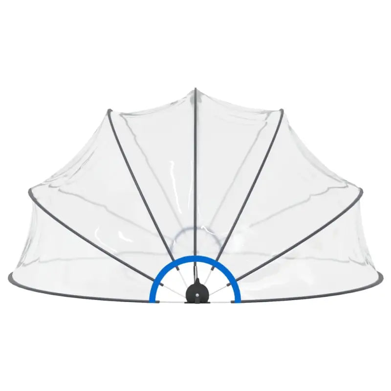 De zwembadbescherming is gemaakt van UPF 30 PVC met een glasvezelconstructie en biedt uitstekende bescherming tegen zon en regen. Het voorkomt dat vervuiling van buitenaf, zoals bladeren, insecten en stof, in het zwembad terechtkomt. Indien nodig zorgt het voor een snellere opwarming van het water en weinig warmteverlies gedurende de nacht. De luifel is eenvoudig te openen dankzij een uniek scharniermechanisme. Dankzij de doorzichtige zwembadafdekking mis je niets van wat er buiten het bad gebeurt. Om de koepel stevig in de grond te verankeren, zijn er grondpennen en haringen bij de levering inbegrepen. Je hoeft je dus geen zorgen te maken dat de koepel wegwaait.