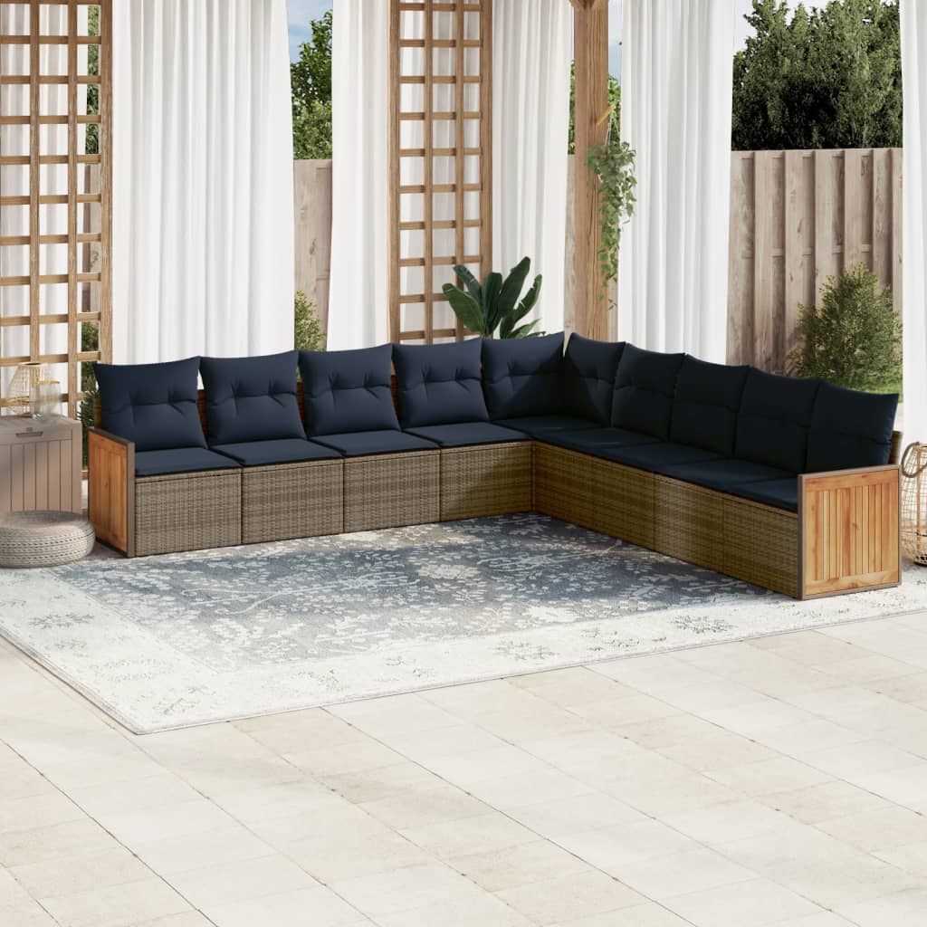 vidaXL 10-delige Loungeset met kussens poly rattan grijs