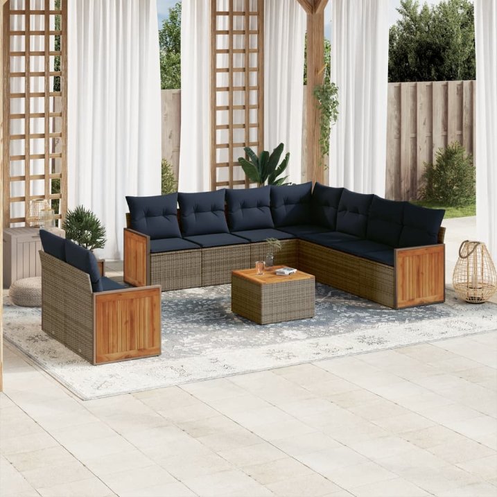 vidaXL 10-delige Loungeset met kussens poly rattan acacia grijs