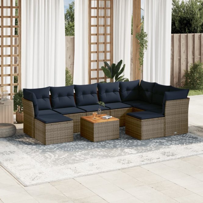 vidaXL 11-delige Loungeset met kussens poly rattan acacia bruin
