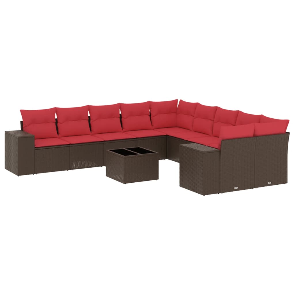 vidaXL 11-delige Loungeset met kussens poly rattan bruin
