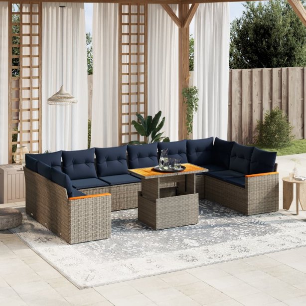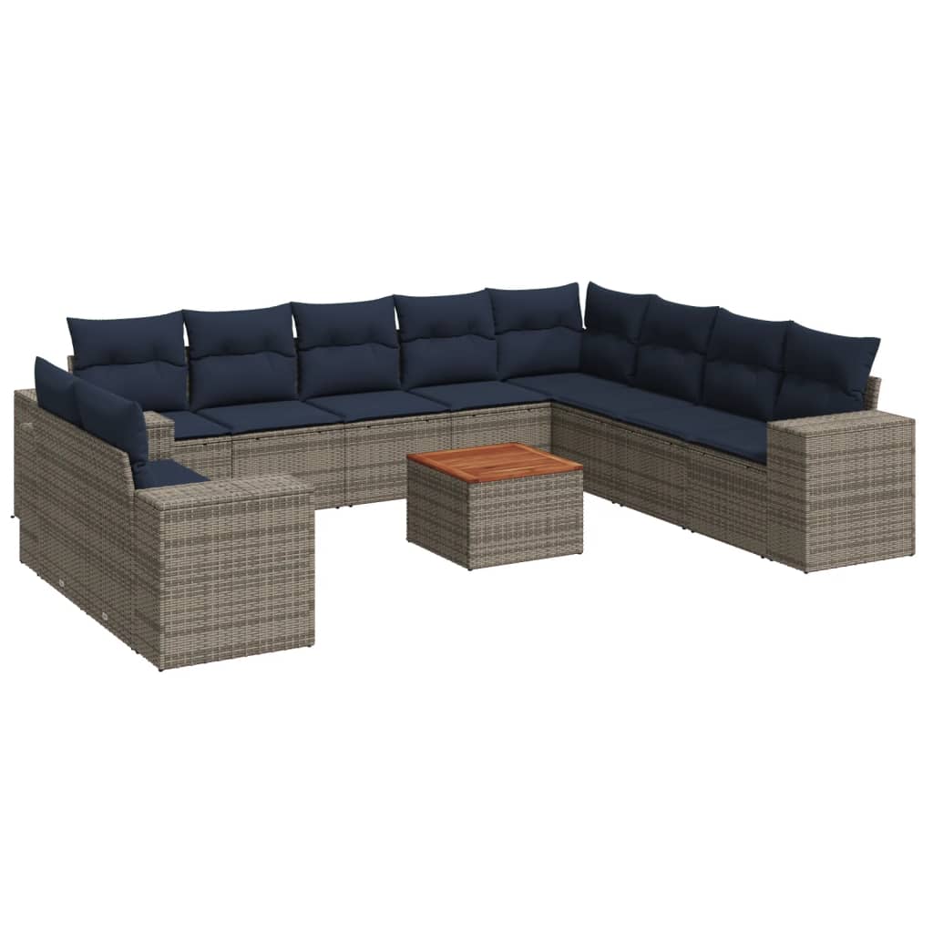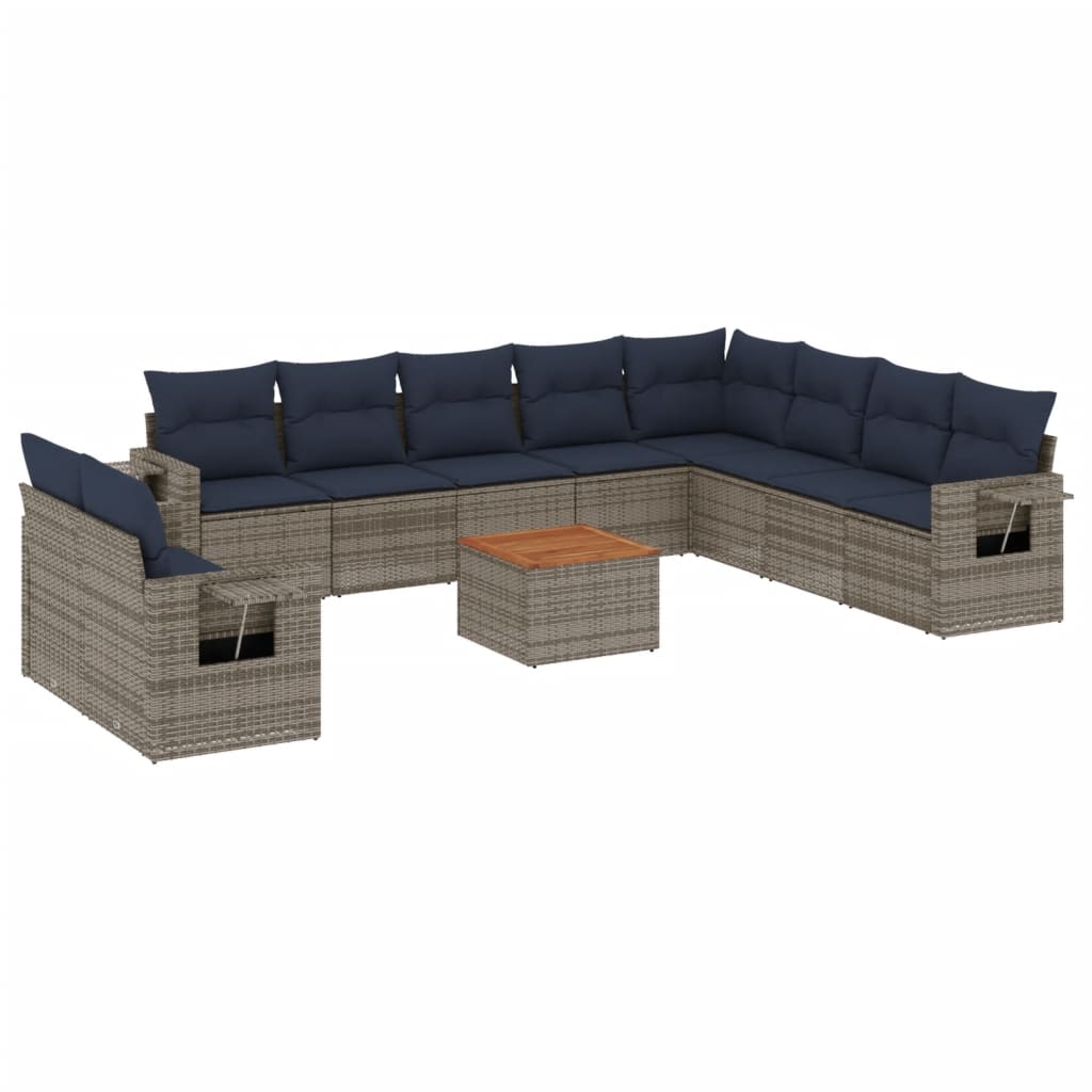 vidaXL 11-delige Loungeset met kussens poly rattan acacia grijs