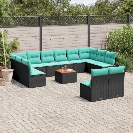 vidaXL 13-delige Loungeset met kussens poly rattan zwart