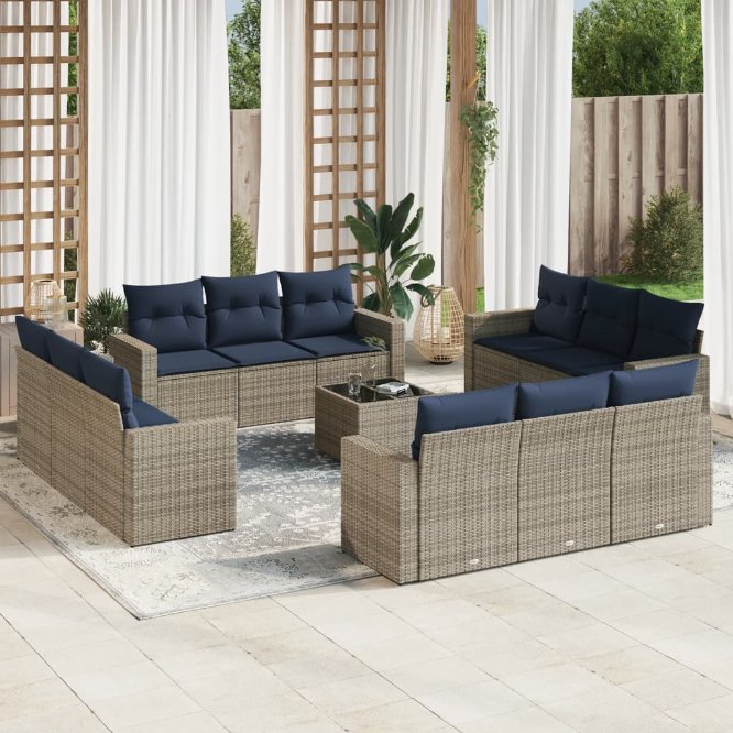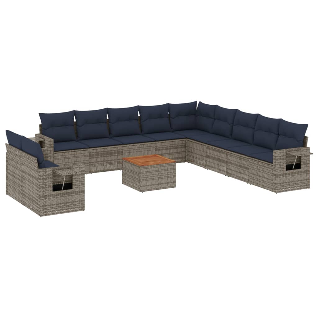 vidaXL 13-delige Loungeset met kussens poly rattan grijs