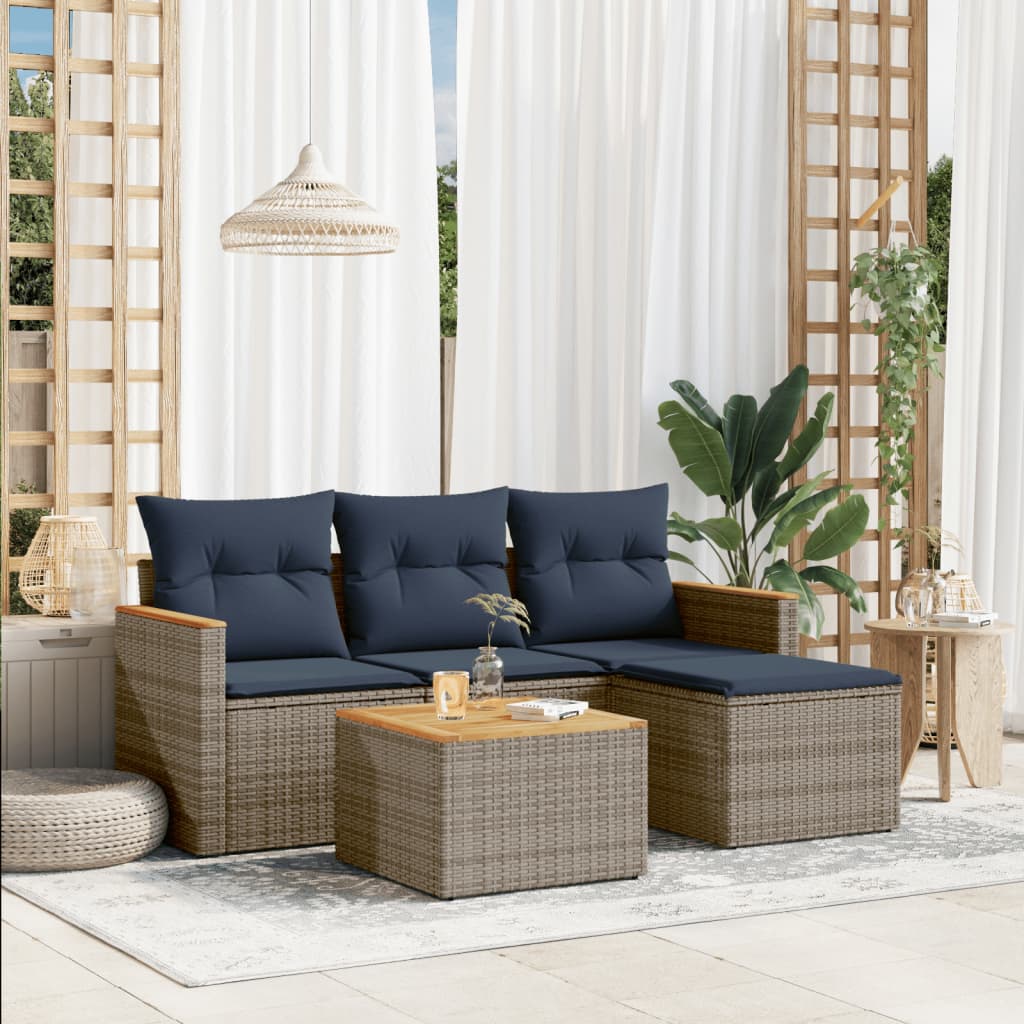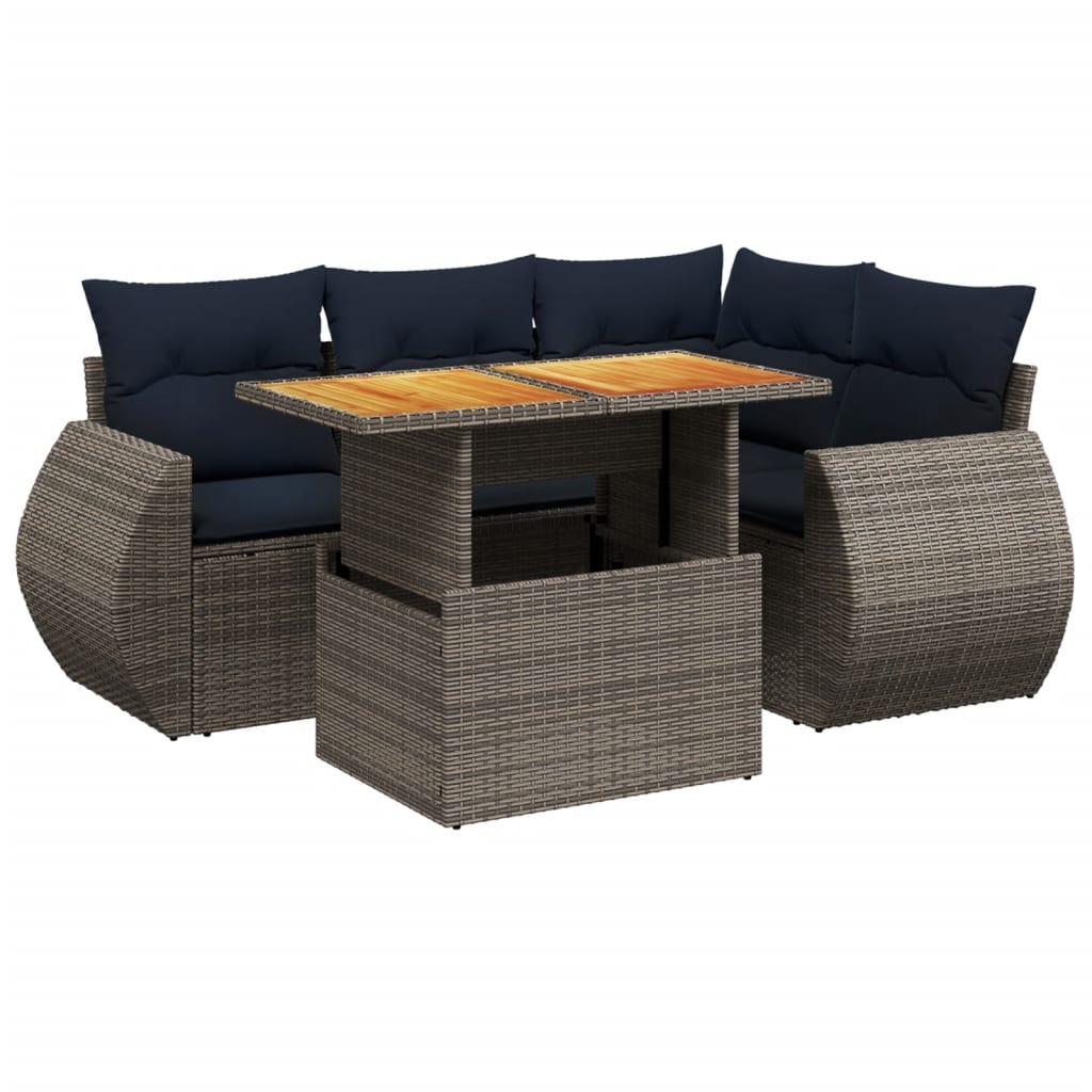 vidaXL 5-delige Loungeset met kussens poly rattan grijs