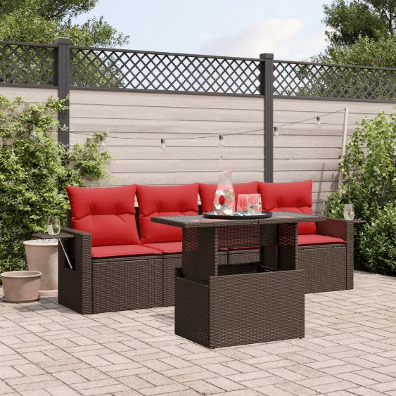 vidaXL 5-delige Tuinbankstel met kussens stapelbaar poly rattan bruin