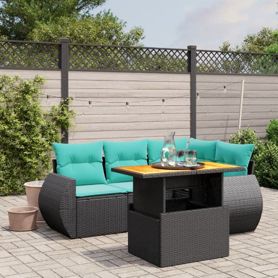 vidaXL 5-delige Tuinset met kussens poly rattan zwart