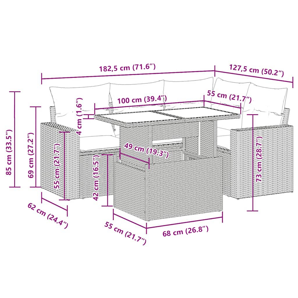 vidaXL 5-delige Loungeset met kussens poly rattan bruin
