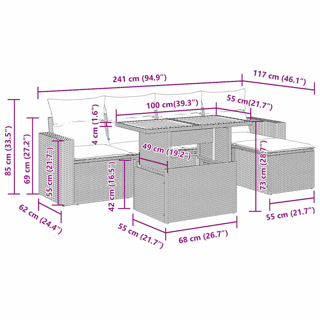 vidaXL 7-delige Loungeset met antracietkleurige kussens grenenhout