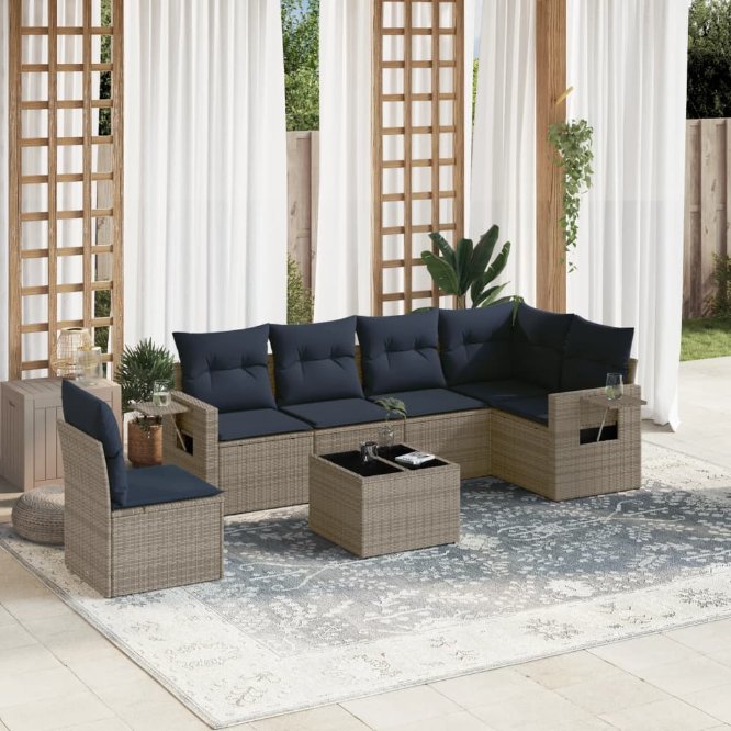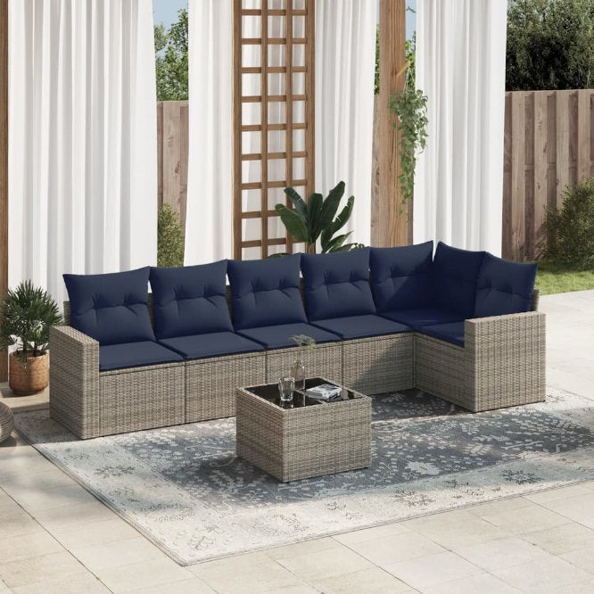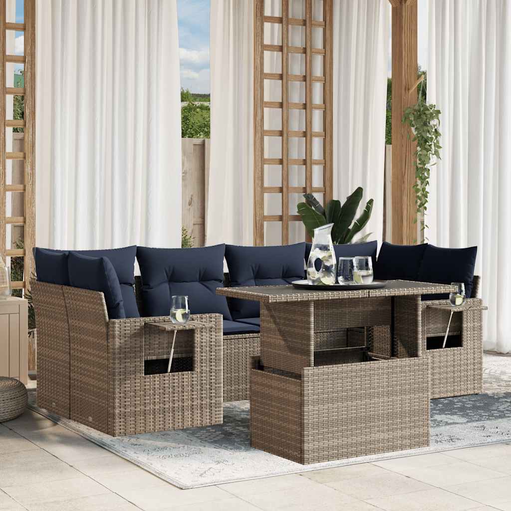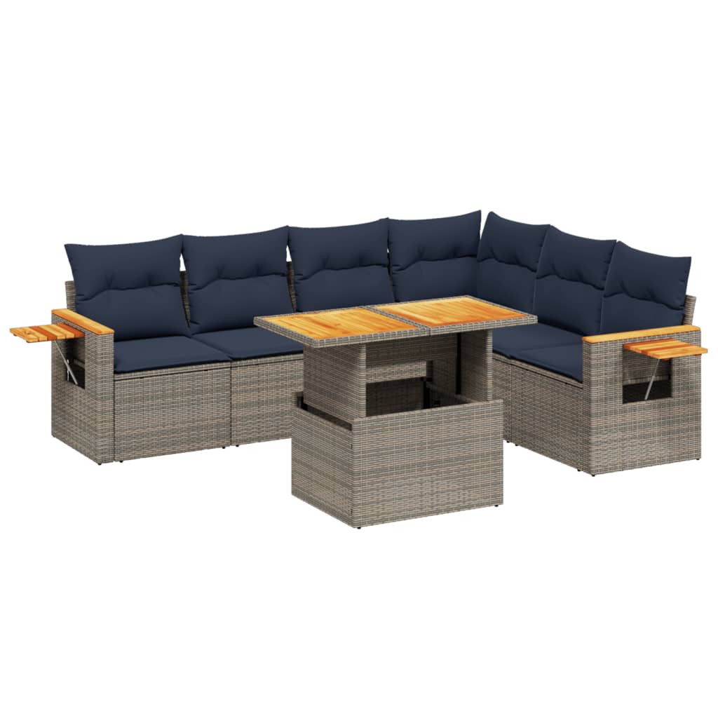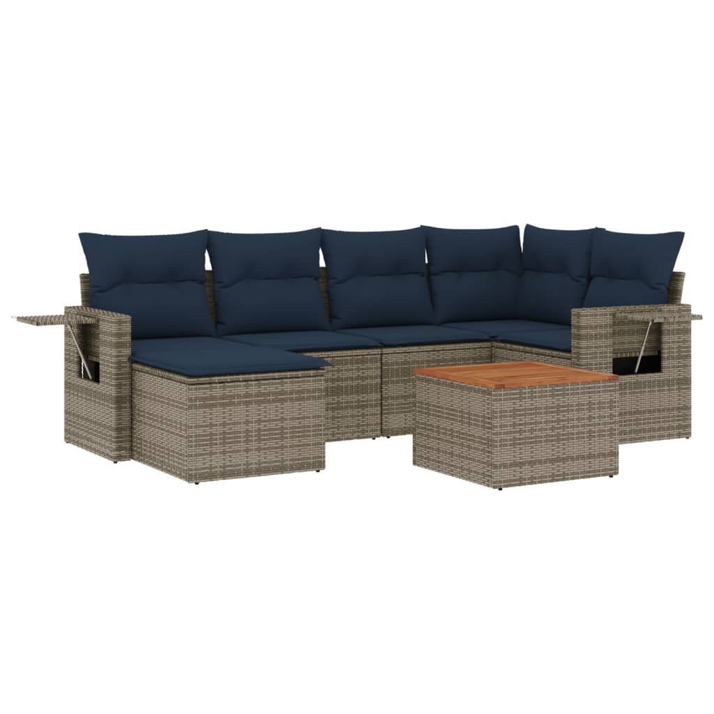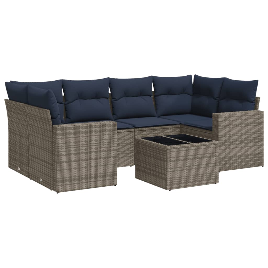 vidaXL 7-delige Loungeset met kussens poly rattan grijs