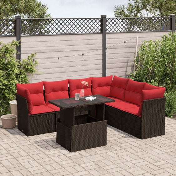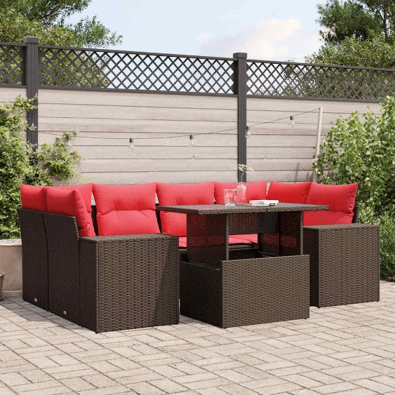vidaXL 7-delige Loungeset met kussens poly rattan bruin