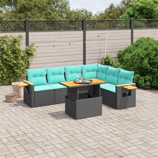 vidaXL 7-delige Loungeset met kussens poly rattan acacia zwart