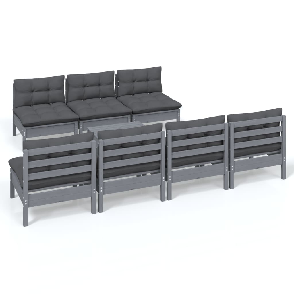vidaXL 8-delige Loungeset met antracietkleurige kussens grenenhout