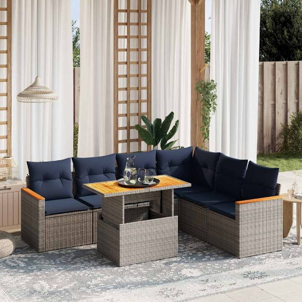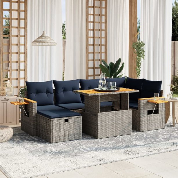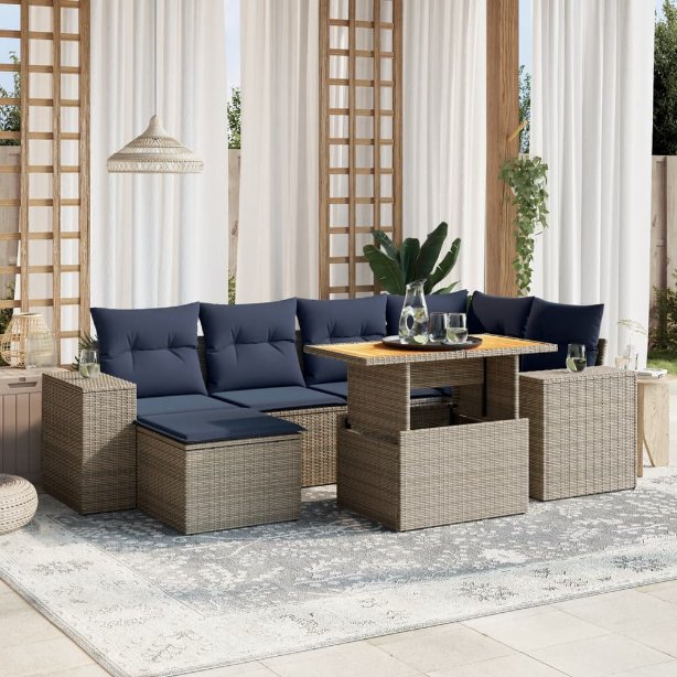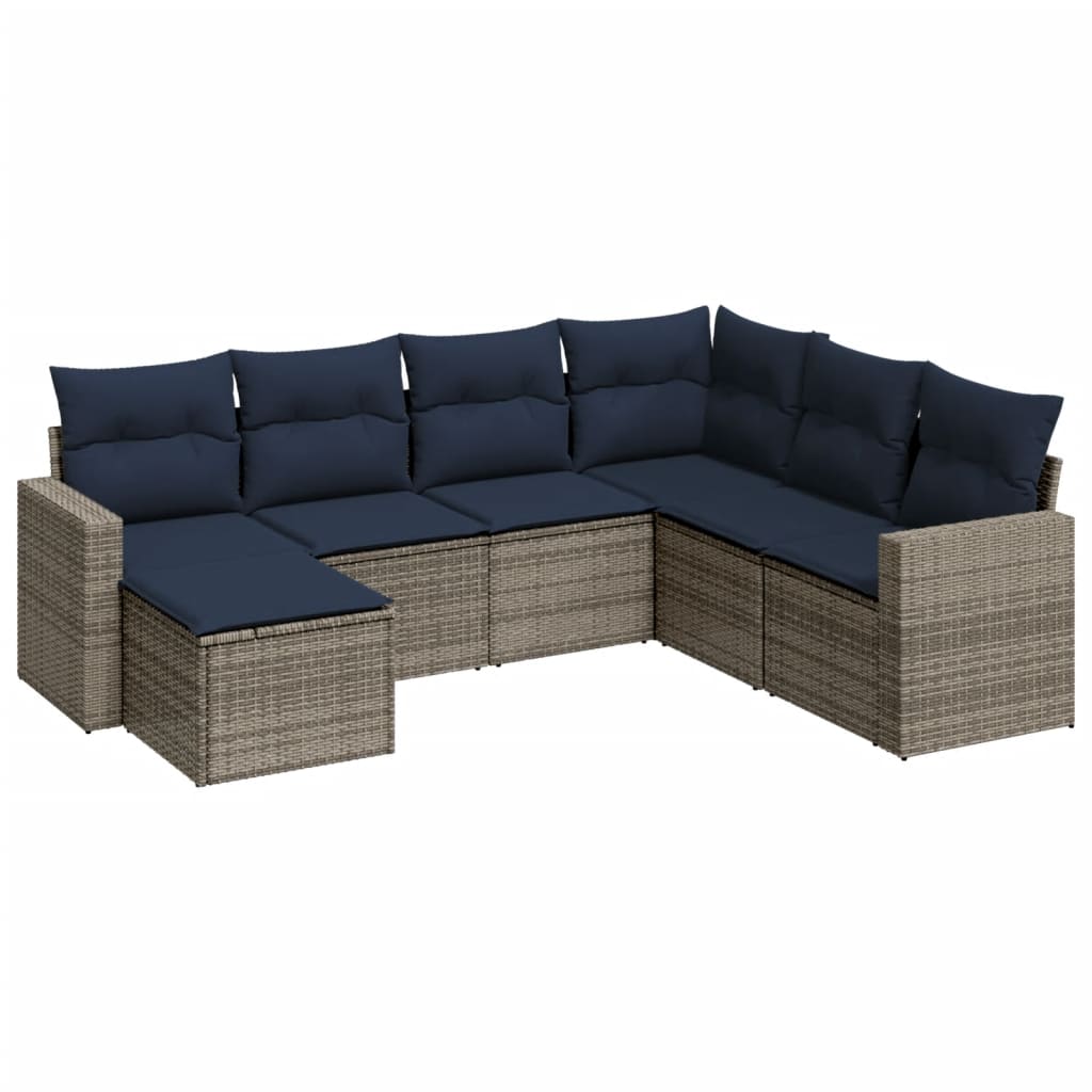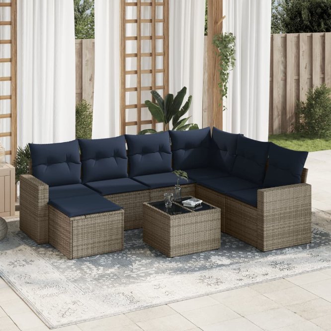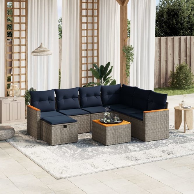 vidaXL 8-delige Loungeset met kussens poly rattan acacia grijs